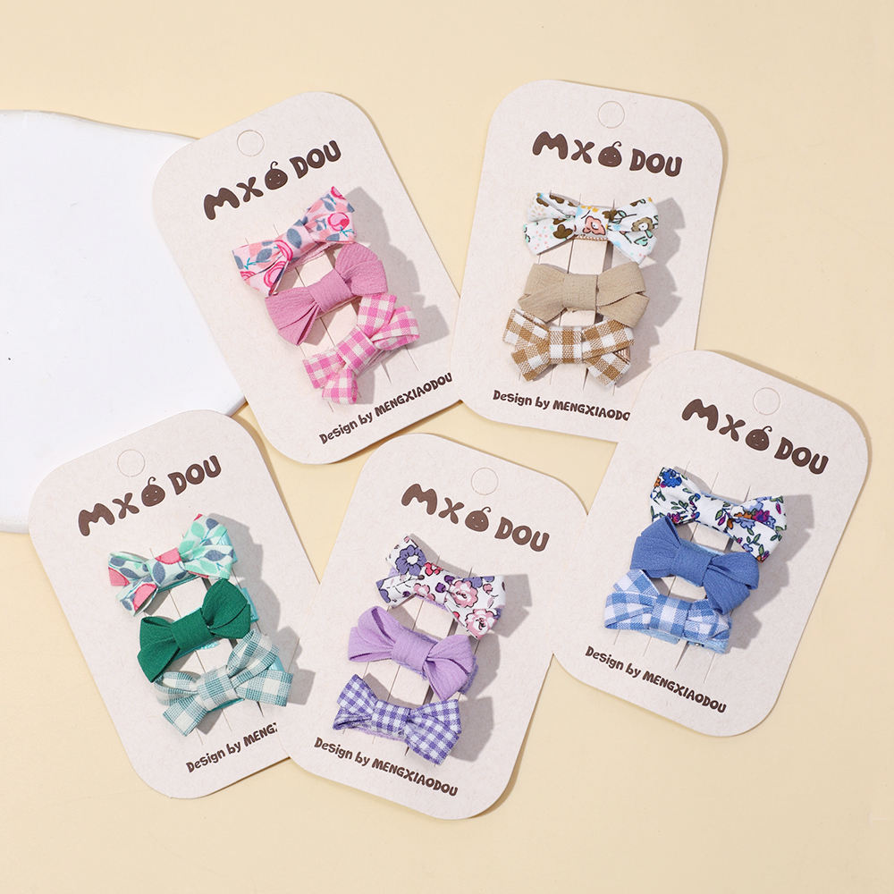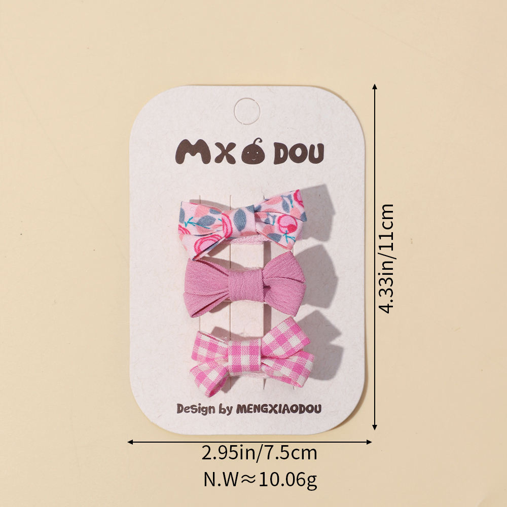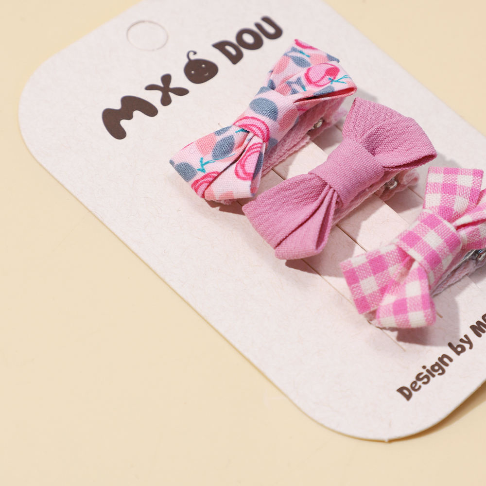 Set of Three Checkered Hair Clips Children Warm Color Bow Baby Girl Cute Cartoon Hairpins Girl Pearl Hairpins